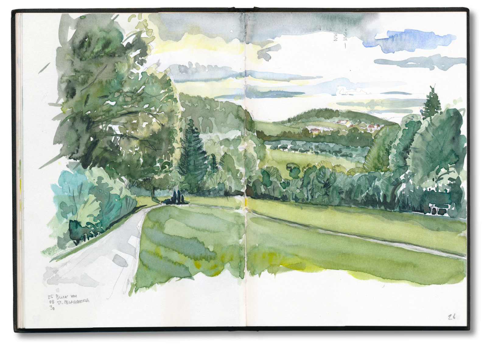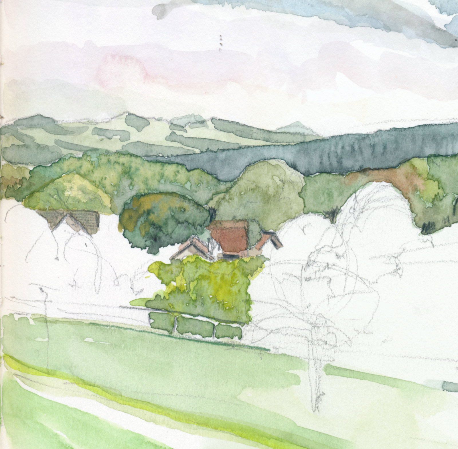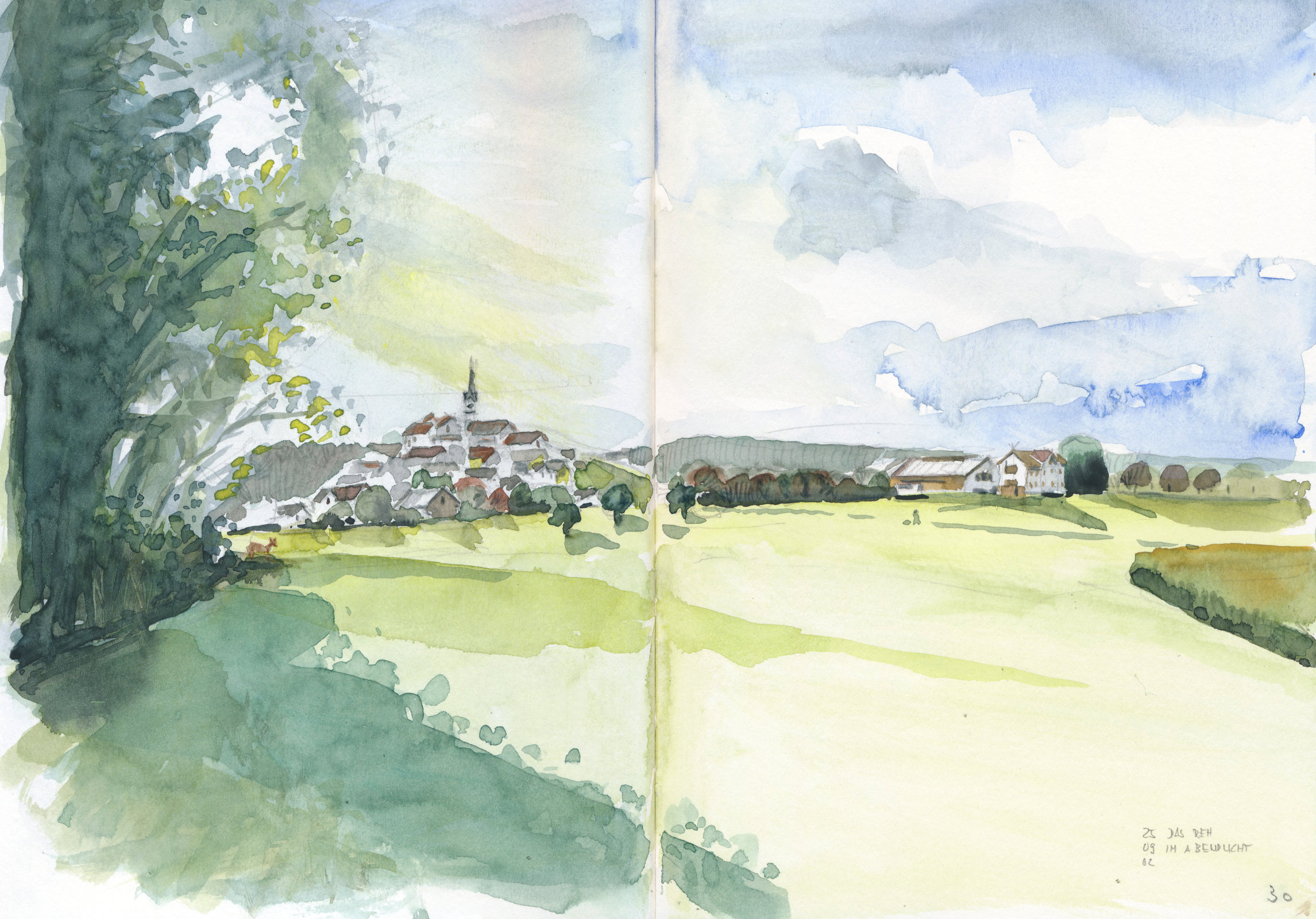 Das Gefühl der Geborgenheit, die vertraue Umgebung, sowie die nächsten Menschen machen aus einem Ort ein Zuhause. Wenn ich von einer kleineren oder grösseren Wanderung zurückkomme, sind es emotionale Momente, die ich nicht in Werte fassen kann. Diese kleinen Runden sind Peaks in meinem Alltag. Alltägliches intensiv erleben. Zwischen drin ist auch mal das Skizzenbuch dabei und die Runden dauern mit Pause ein wenig länger. Tausendmal habe ich die Landschaft mit den kleinen Weilern schon gesehen. Zu Hunderten habe ich sie schon gezeichnet. Langweilig wird es nie, meine Sinne sind offen und mein Blick ändert sich immer wieder auf ein Neues.